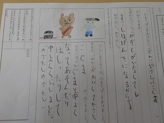 国語科で昔話を読みました。「めでたしめでたし」で終わる話を作りました。