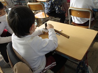 図画工作科でくぎ打ちをしました。