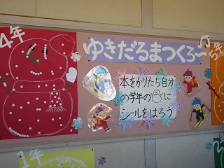 図書館で本を借りたら雪だるまにシールを貼ります。
