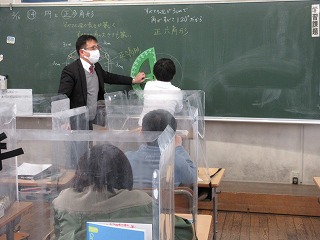 算数科で正多角形を描いています。