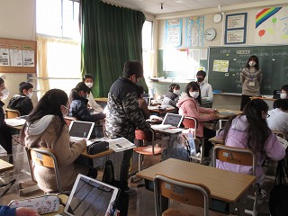 社会科で歴史学習をしています。映像を見たり、資料を読んだりして当時の様子を学んでいます。