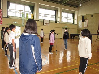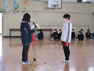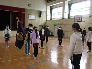 6年生から5年生に校旗を渡し、引き継ぎ式をしました。5年生は、感謝の気持ちを書いたメッセージを6年生に渡しました。