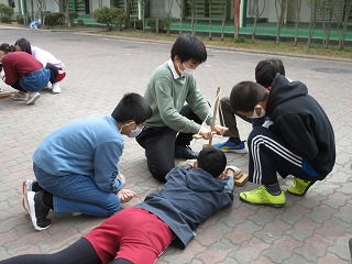火起こし体験をしました。グループの子と協力して活動しました。