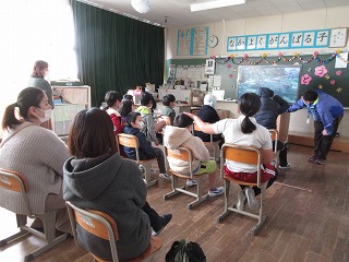 6年生を送る会をしました。ゲームをしたり、1年生が感謝の言葉を述べたりしました。