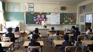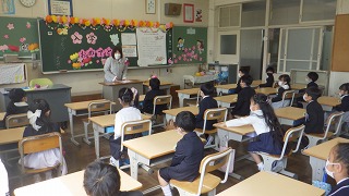入学式が終わって、1年生は、担任の先生の話を聞きました。