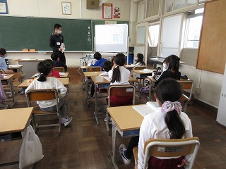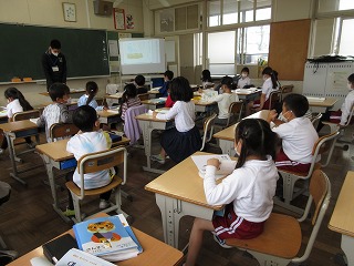 国語科で「風のゆうびんやさん」を漢字の読み方をICTで学習した後、音読しました。