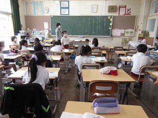 国語科で音読の学習をしています。登場人物の気持ちや行動を考えて読む練習をします。