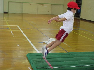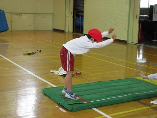 体育科でボール投げ、立ち幅跳びをしました。