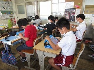 漢字の読み書きの学習を学習用タブレットを使って行いました。