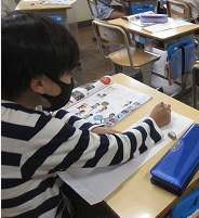 生活科で学校のまわりの学習をしています。家から学校までを絵地図に描いてみました。