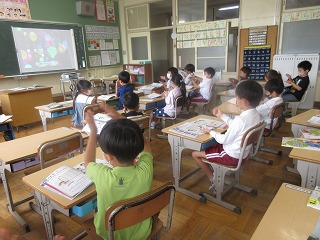 音楽科で曲に合わせてリズム遊びをしました。