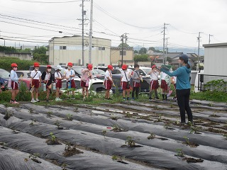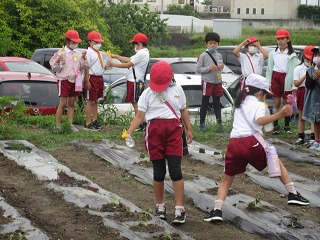 生活科で育てているサツマイモの様子を学年園に見に行きました。
