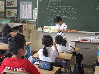 水曜日は朝の読書の時間です。4年3組は、係の児童が絵本の読み聞かせをしました。