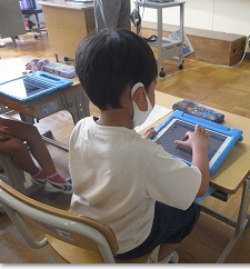 図画工作科で自分の作品をタブレットを使って撮影しました。家に帰って、家族に見せます。