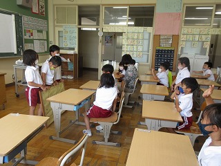 算数科でひき算の学習をしました。バスに乗っている人がおりていくことをしながら学びました。