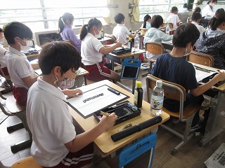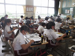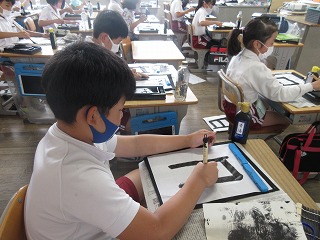 書写で「日」の学習をしました。一画一画丁寧に書きました。