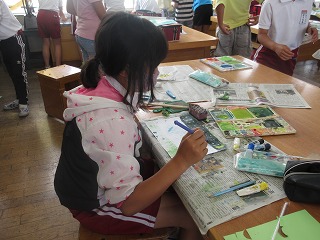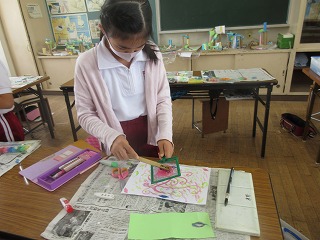 図画工作科でいろいろな用具を使って模様を作りました。