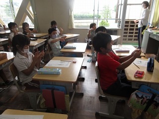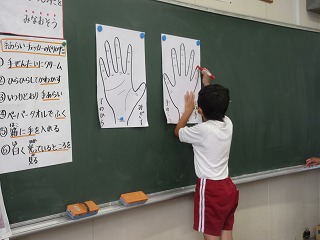 養護教諭と担任で手の洗い方を見直す学習をしました。