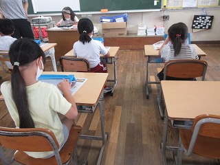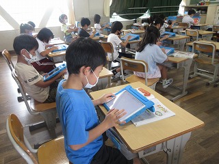 自分が育てた夏野菜を使って調理をしました。作ったものをタブレットで写真を撮ってきました。友達の料理を見合いました。
