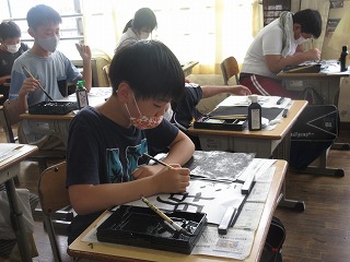 書写の時間に「湖」を毛筆で書きました。