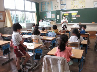 算数科で長さ比べをしました。2つのひもを使って、長さを比べました。