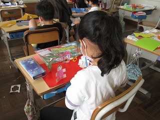 図画工作科で「折って、立って」の学習をしました。紙を折って、立たせた作品づくりをしました。