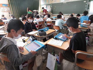 算数科で□を使った式の計算をしました。考え方をタブレットを使って、友達に伝えました。