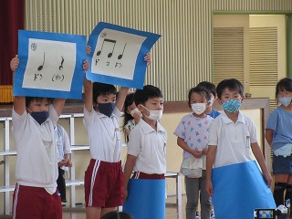 学習発表会をしました。お祭りのリズムを作って発表しました。