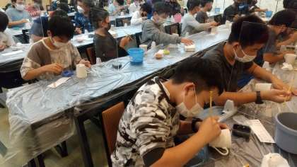 マグカップに、絵や模様を描きました。