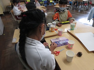 11/1 1年生 公開日 2022/11/01 更新日 2022/11/01 各学年から 生活科で秋まつりのおもちゃづくりをしています。松ぼっくりやドングリなど秋に見つけたものを使っておもちゃを作っています。