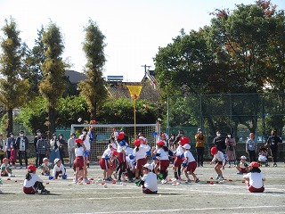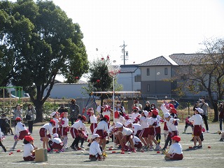 玉入れをしました。1回戦は、1年生。2回戦は2年生。3回戦は1・2年生で、取り組みました。