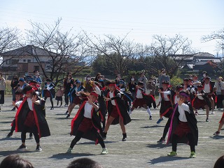 友達と心を合わせて、踊りました。組体操の一人組も取り入れました。