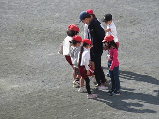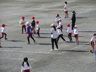 休憩時間に担任の先生と一緒にドッジボールやはないちもんめをして遊びました。