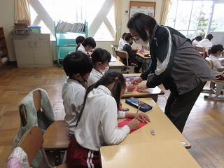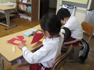 国語科でスイミーを読んでいます。スイミーのお面を作りました。