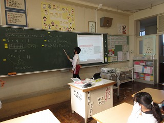 算数科でくりあがりのある足し算の学習をしました。考え方をみんなの前で説明しました。