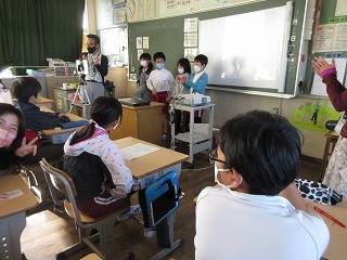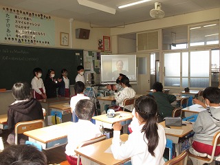 外国語活動でフィリピンに住む方とリモートで交流しました。自己紹介したり、好きな食べ物を聞いたりしました。