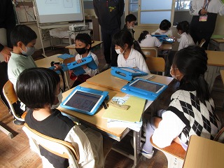 2年生 公開日 2022/11/16 更新日 2022/11/16 各学年から 算数科で三角形と四角形の学習をしました。タブレットに配付されたいろいろな形を三角形と四角形に仲間分けしました。仲間分けした理由をグループの友達同士説明しました。