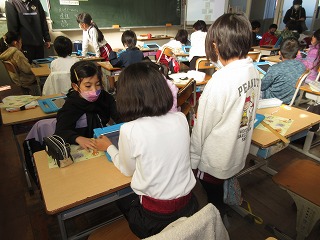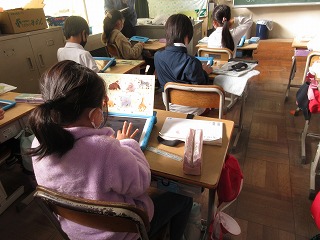 算数科で三角形と四角形の学習をしました。タブレットを使って三角形と四角形に分けて、分けた理由を説明しました。