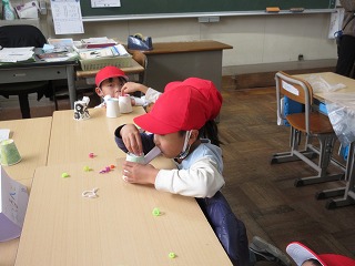 11/30 1・2年生 公開日 2022/11/30 更新日 2022/11/30 各学年から 生活科でおもちゃまつりをしました。2年生が動くおもちゃを作りました。1年生を招待しました。的あて、車レース、糸電話、釣りなど楽しく遊びました。