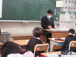 生活科でまちたんけんの学習をしています。地域にある衣料品店の方に話を聞きました。