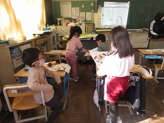 図画工作科と生活科で作った作品の説明を友達同士でしました。