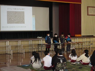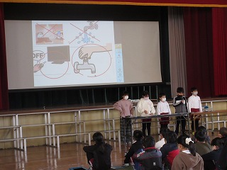 学習発表会をしました。環境について調べたことや実践することを発表しました。