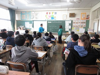 外国語科で楽しかったことを伝えたり、尋ねたりする言い方を学びました。友達同士で練習しました。
