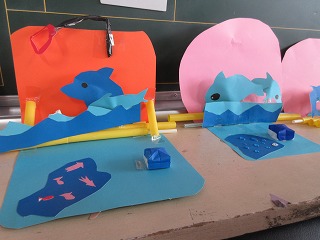 図画工作科でストローを使って動くおもちゃを作っています。