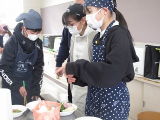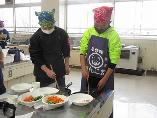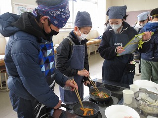 家庭科で調理実習をしました。野菜炒めを作りました。
