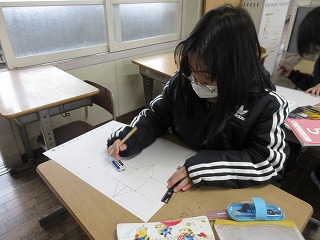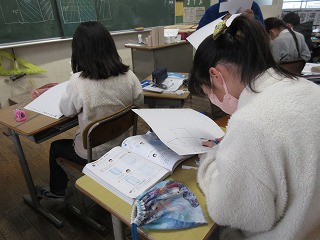 算数科で三角柱の見取り図を描きました。描いた見取り図を切って組み立ててみました。