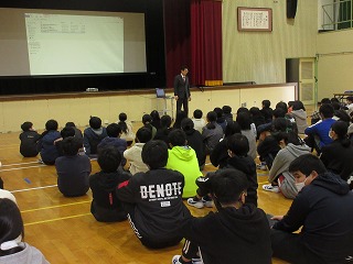 中学校の校長先生と養護教諭の先生が、中学校の学校生活について、紹介してくださいました。
