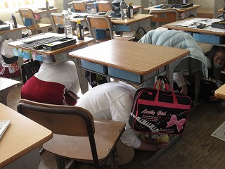 自分の命は自分で守ることができるように、休憩時間に予告なしの避難訓練を行いました。
