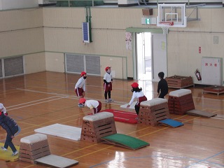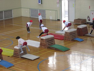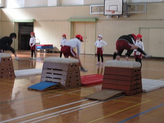 体育科で跳び箱遊びをしました。