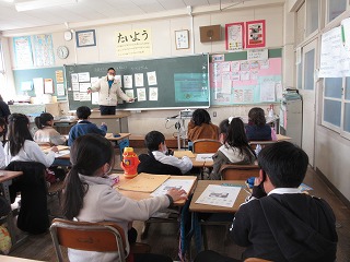 外国語活動でお話を聞いて内容を考える学習をしました。お話の中に出てくる動物等を当てる遊びをペアしました。